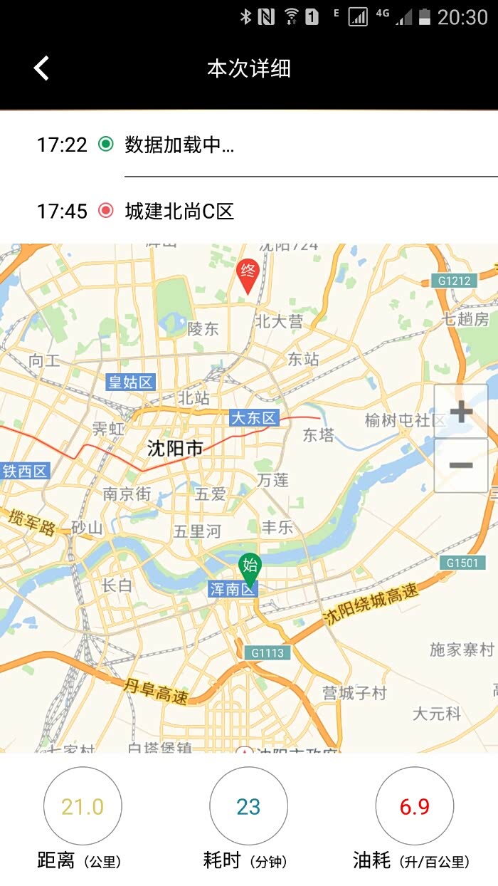 再看这张,21公里,走的二环,没有红绿灯,不堵,基本维持在70脉,油耗显示只有6.9
