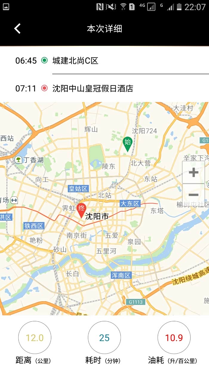 下面的这组图,往返的路线基本相同,也不怎么拥堵,但前者启动时是冷车(放了一晚上),后者启动时车基本是热的,两者差了两个油。
