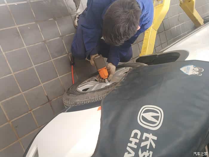 现在有了工具真心方便,轻轻几下轮胎螺丝就下来了。