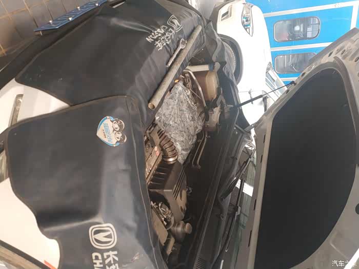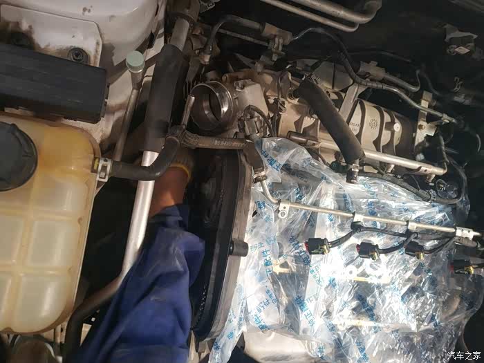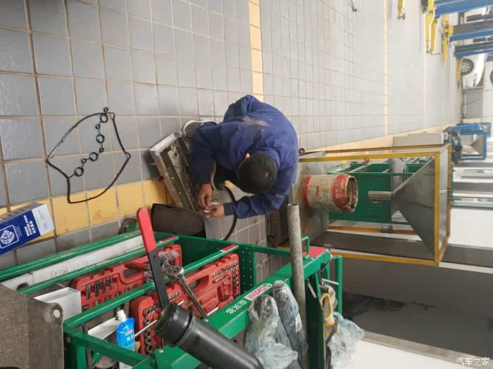 拆掉缸盖以后的大白,小伙计细心的用塑料布盖住,防止杂物的掉落,损坏气缸。