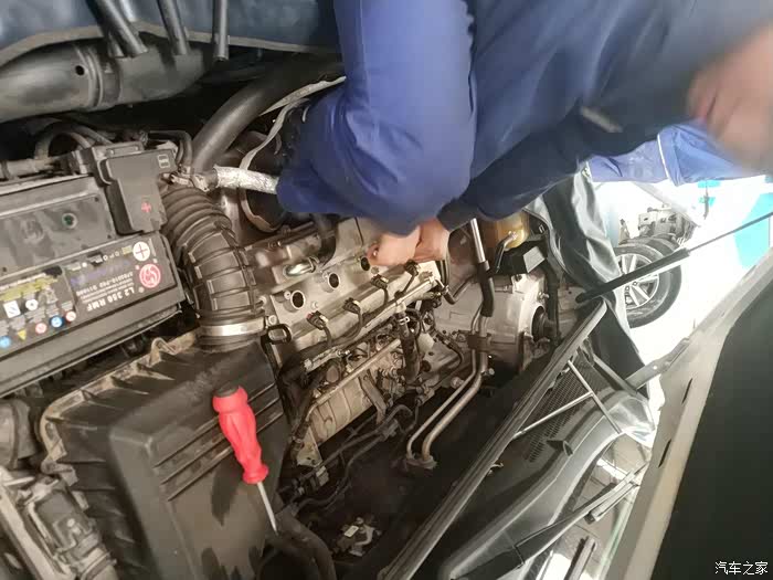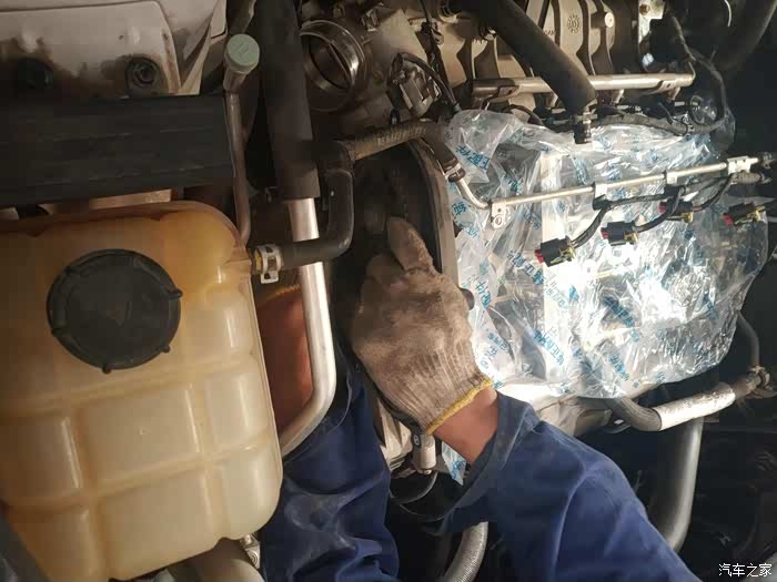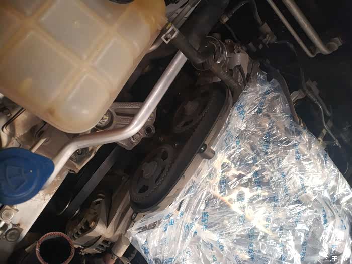 这张是手机伸进去拍摄的效果,那条粗粗的皮带就是正时皮带。