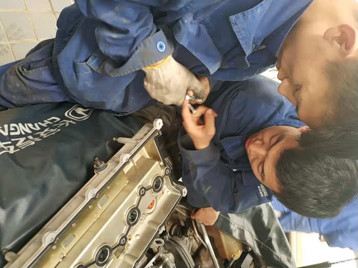 那个黑色的圈圈就是汽缸罩盖密封垫,一会一起换新的。