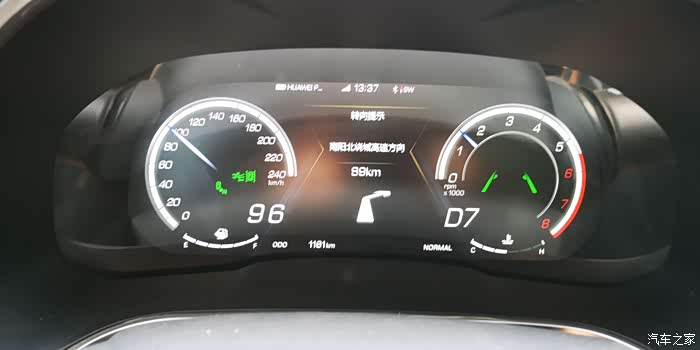 车载导航信息是可以在仪表盘上显示的哦!这是转向提示、道路信息和里程。
