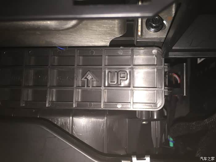 拆开后就是这个样子,看到改版了吧,卸掉三个螺丝,里面就是空调滤芯的地方了
