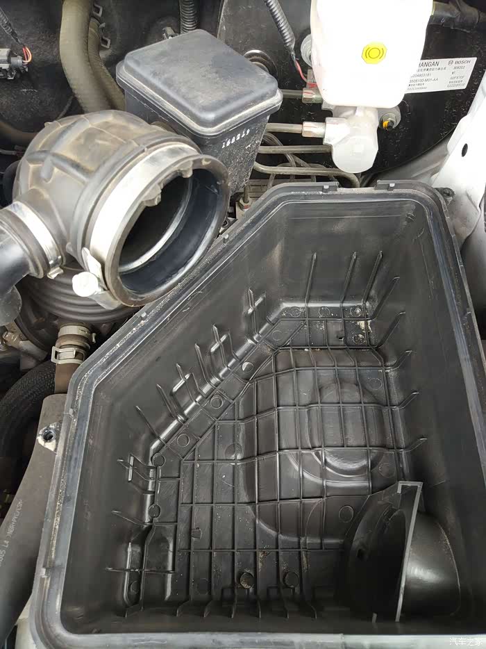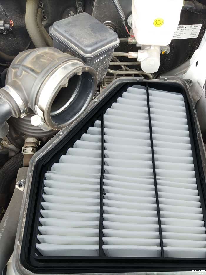 将新的空滤芯放到空滤盒里,千万别放反了方向