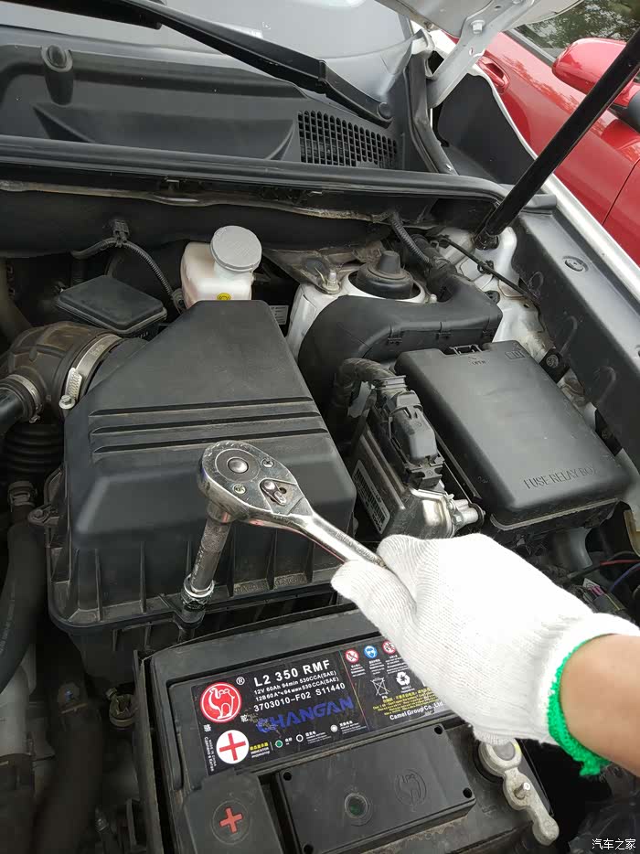 用梅花套筒扳手将空滤盖上面的螺丝拆掉