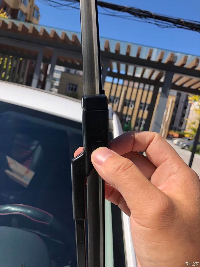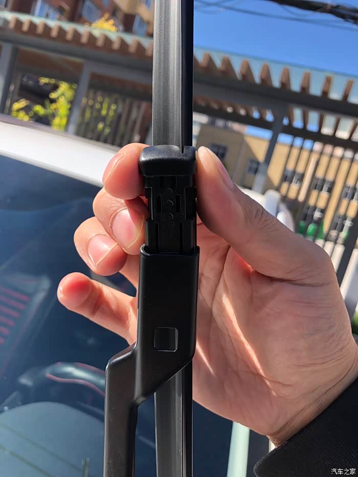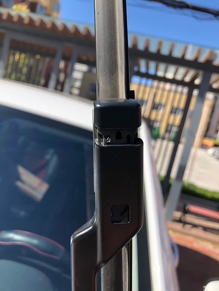 75的雨刮很好更换,就是一个卡扣,按下去往上推。
