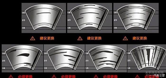 而怎么区分雨刮器是不是该换了就取决于挡风玻璃刮的怎么样了,这张图片让你清晰的了解。