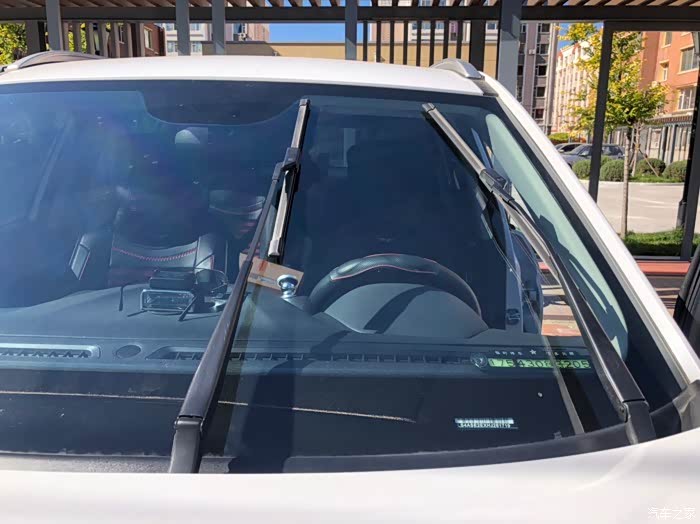 为了方便更换我把雨刷器立了起来,怎么立起来的没有技巧可言,就是打开雨刷器刷到顶的时候马上关电源就OK了!