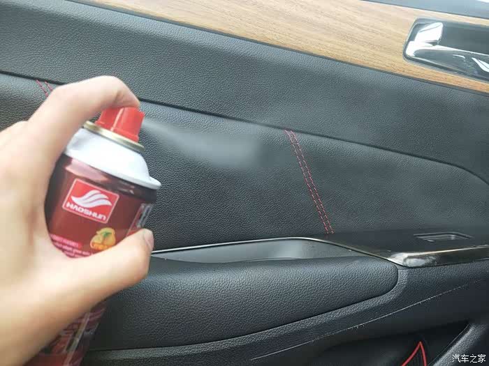 给扶手箱也喷喷,焕然一新