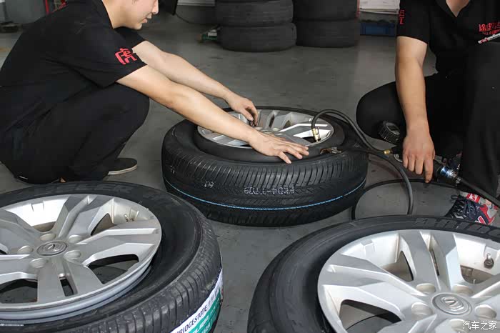 将新的轮胎充气。这个过程就是比较烦了,因为轮胎包装的太紧了,导致充气都不好冲,弄了半天。不过还好,总算是搞定了!