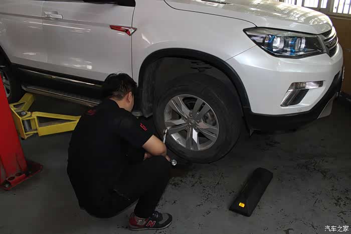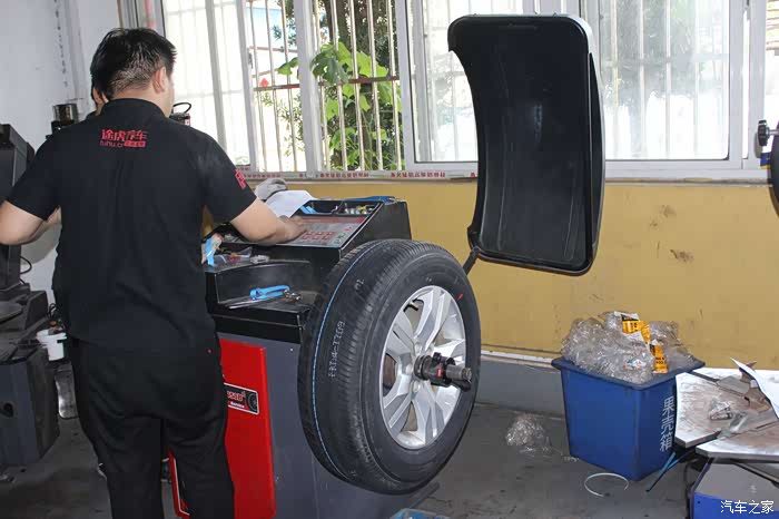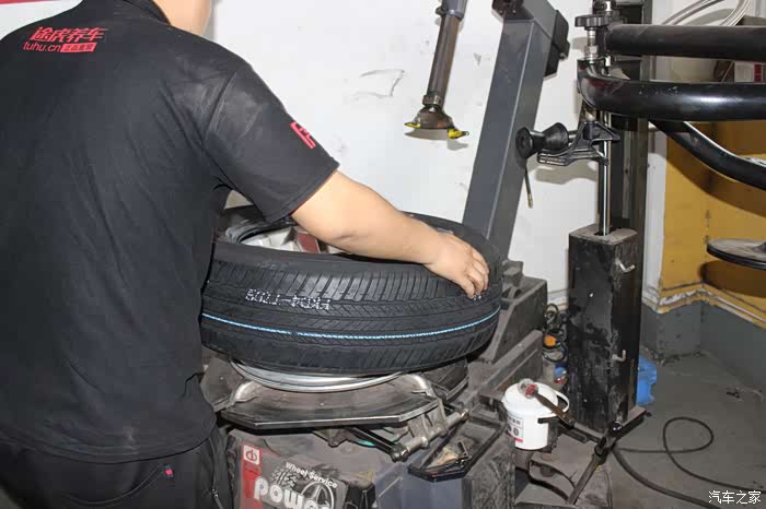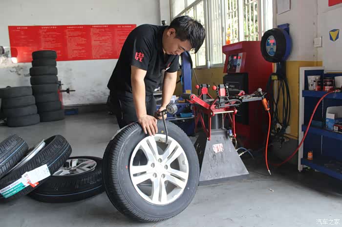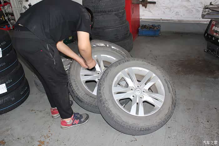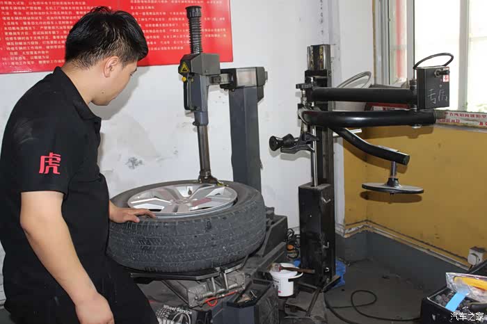 技术师傅用专业的机器清理掉轮胎,不过装一个确实挺累的!