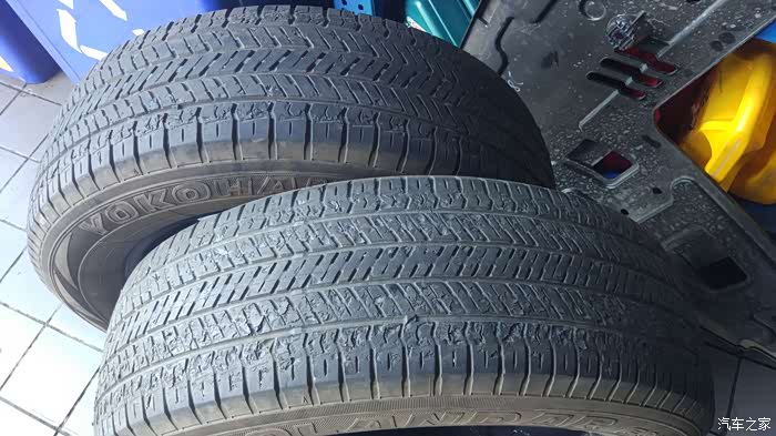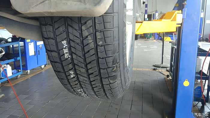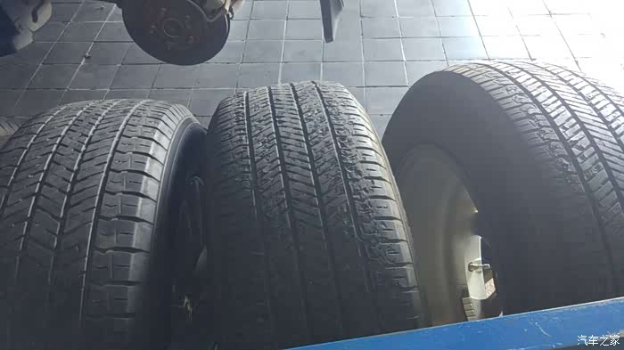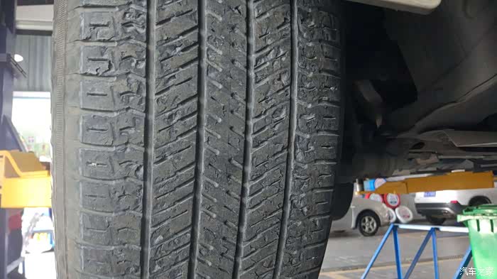 后轮胎外观尚可,只是磨损到了安全线,两条前轮外观有些令人不忍直视