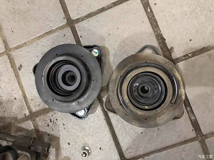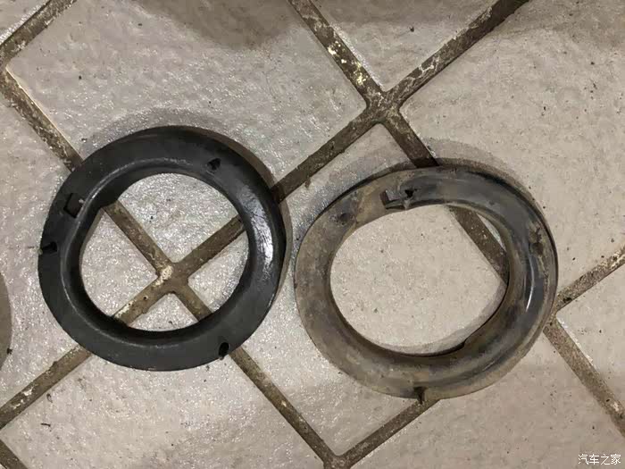 来张对比图,很清楚的发现左侧是全新的,右侧是旧的,旧的已经变形磨损了,所以开车时一直有异响