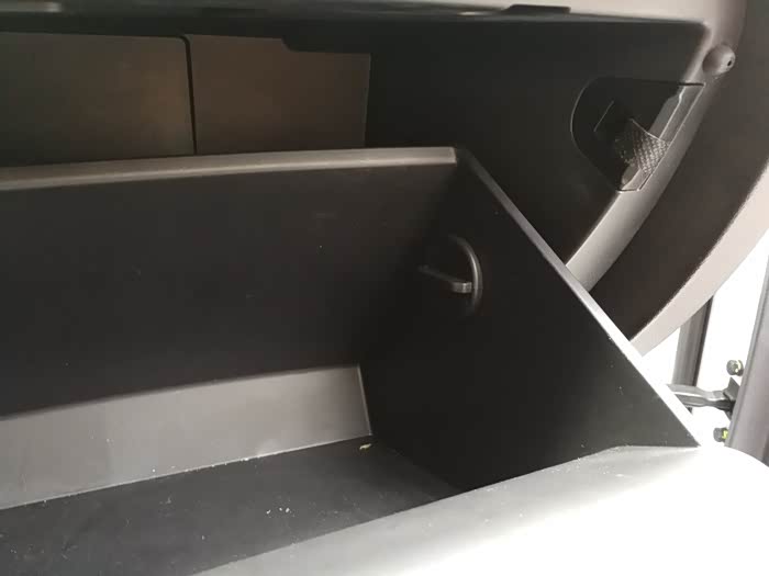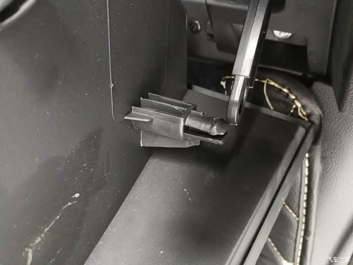 打开手套箱,看到左右两边都有一个卡扣