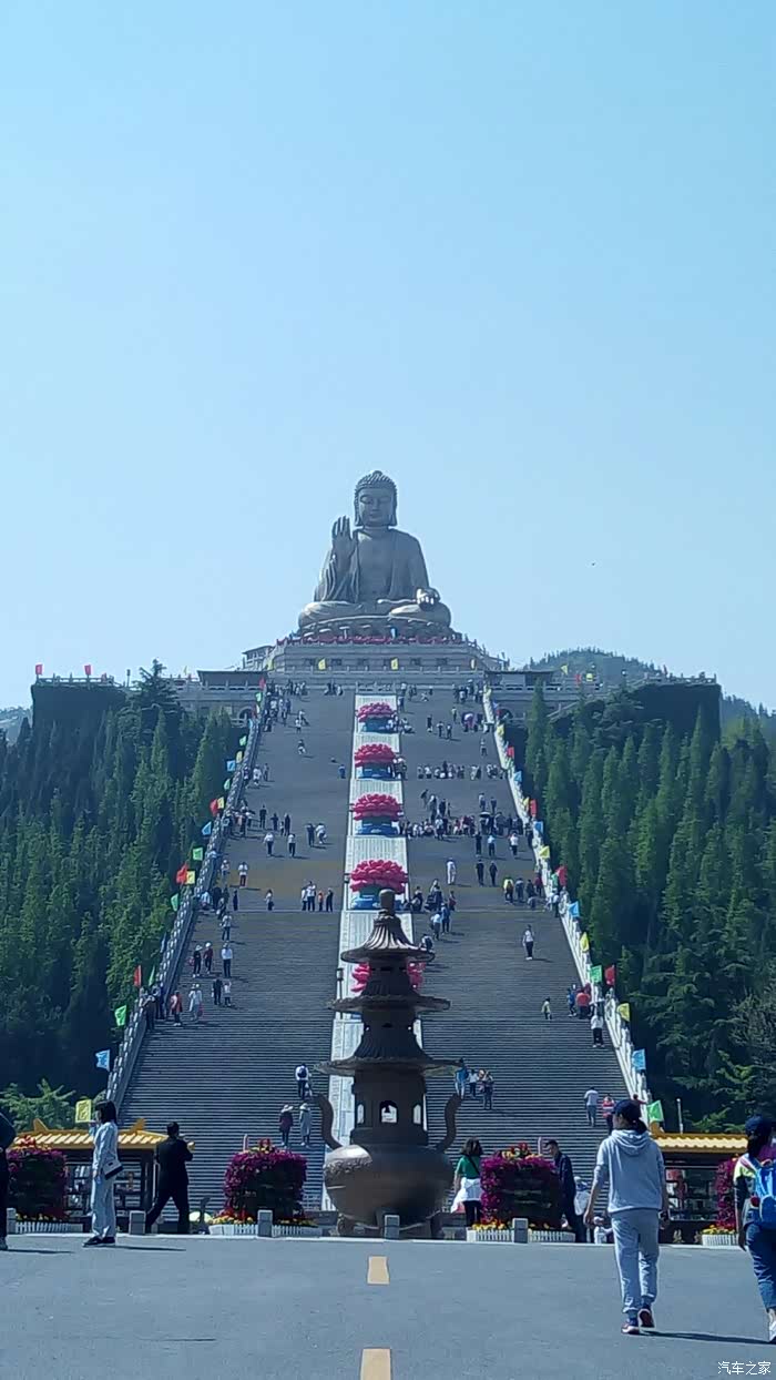 4月29日,天气晴。头两天和朋友商量了一下,决定就到龙口的南山大佛看看,听说这是烟台第一大佛,山东第一大佛,中国第一大佛,世界第一大佛,众多的第一显示出了它的地位。博越智慧版拥有定速巡航模式,至尊版拥有自适应巡航。定速巡航就是车辆达到一定的车速后开启定速巡航模式,设定一定的速度保持不变。即使前面有车辆也是保持设定的速度行驶。自适应巡航是车速达到每小时30公里的时候可以启动自适应巡航,并且可以调整跟车距离,有三种距离可选。巡航在八十公里之前是五公里叠加,八十公里后是每十公里叠加。而且自适应巡航在遇到比你设定速度慢的车辆的时候会自动刹车降低车速,当达到设定距离时会自动解除巡航模式。怎么样够智能吧!废话不多说,进入今天的主题~南山大佛。南山大佛(释迦牟尼)——世界第一锡青铜铸大坐佛。南山大佛位于山东省烟台市龙口市南山旅游区的南山大佛,高38.66米,重380吨,选材锡青铜铸造,由232件佛体、108块莲花瓣、302个发髻、共642块锡青铜铸件组合而成这座举世罕见的锡青铜释迦牟尼大坐佛,堪称目前世界第一铜铸大坐佛。烟台南山大佛位于山东省烟台龙口市境内景色秀丽的卢山之中,南山大佛,高38.66米,重380吨,这座举世罕见的锡青铜释迦牟尼大坐佛,堪称目前世界第一铜铸大佛。烟台南山大佛万佛堂内陈列着9999万尊造型逼真、栩栩如生的金铜佛像,与大坐佛共同构成了万尊佛像的宏大阵容。佛教历史博馆内展示了佛教文化兴起兴盛的历史记载,馆内还陈列展出了释迦牟尼佛舍利数十件文物和佛教文化艺术珍品。博越拥抱大自然。