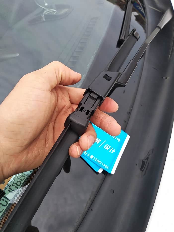 按雨刷片就更简单了,沿着雨刷片的槽往里一推就可以了