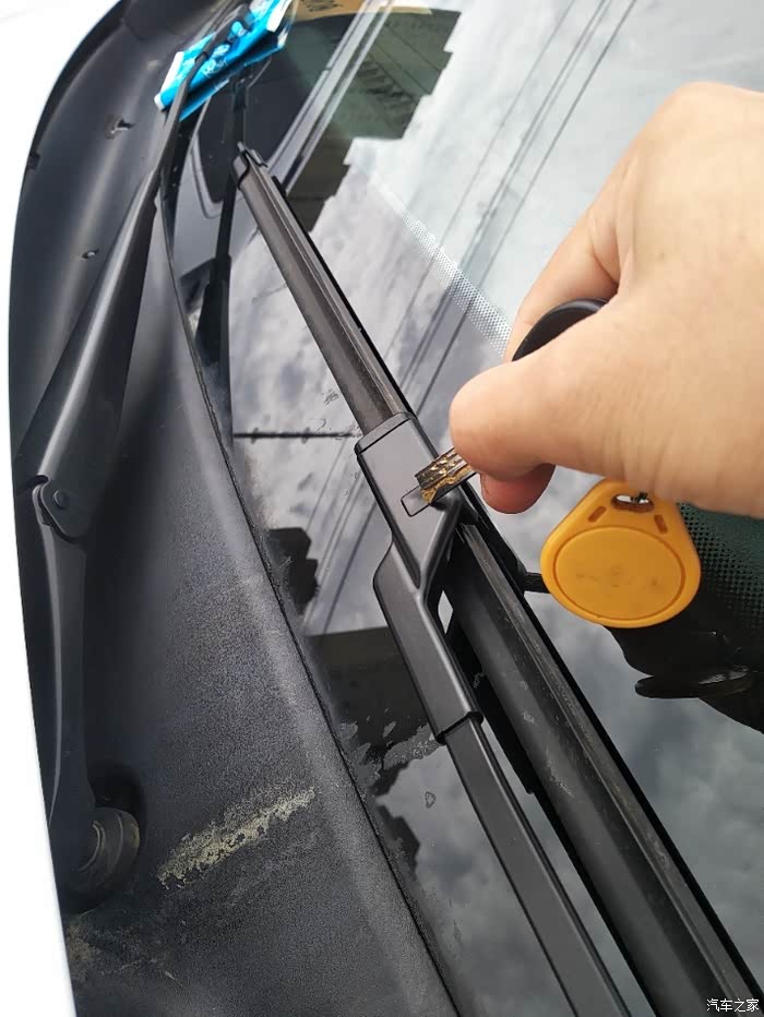 接下来就开始把大白的原车雨刷片拆下来
