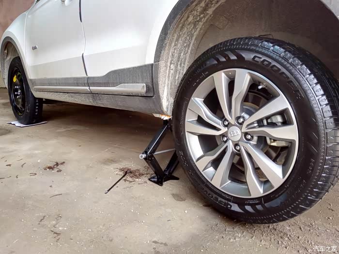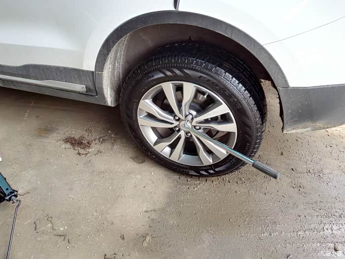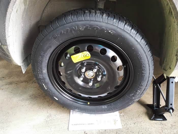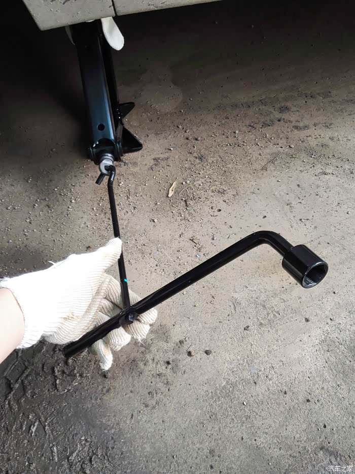 放下千斤顶,用自己买的轮胎扳手加固。