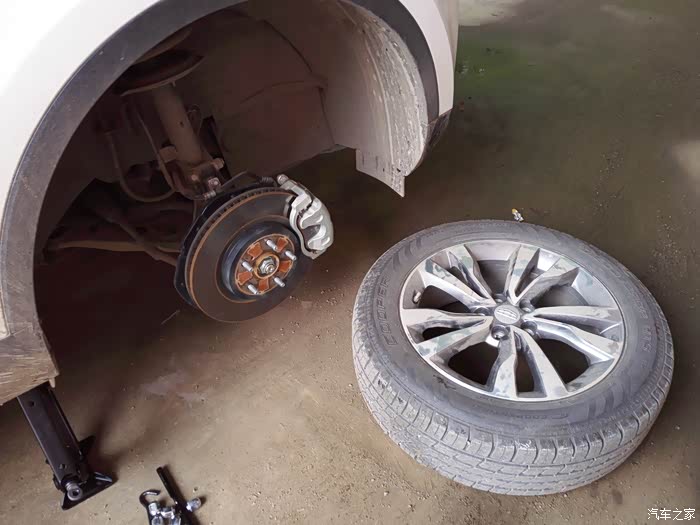 凉一下,拆下一个轮胎。