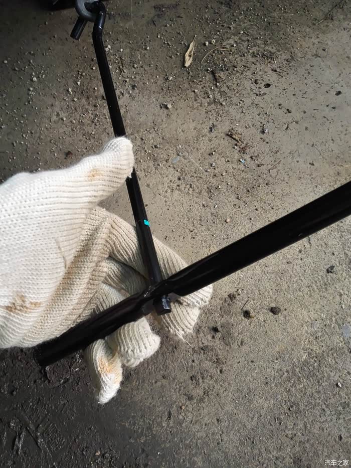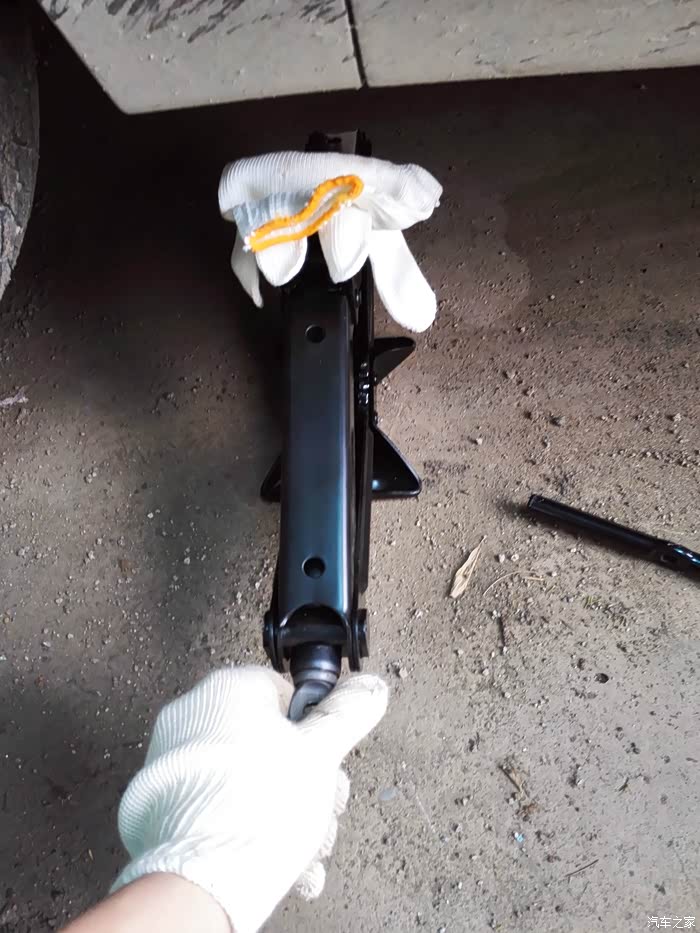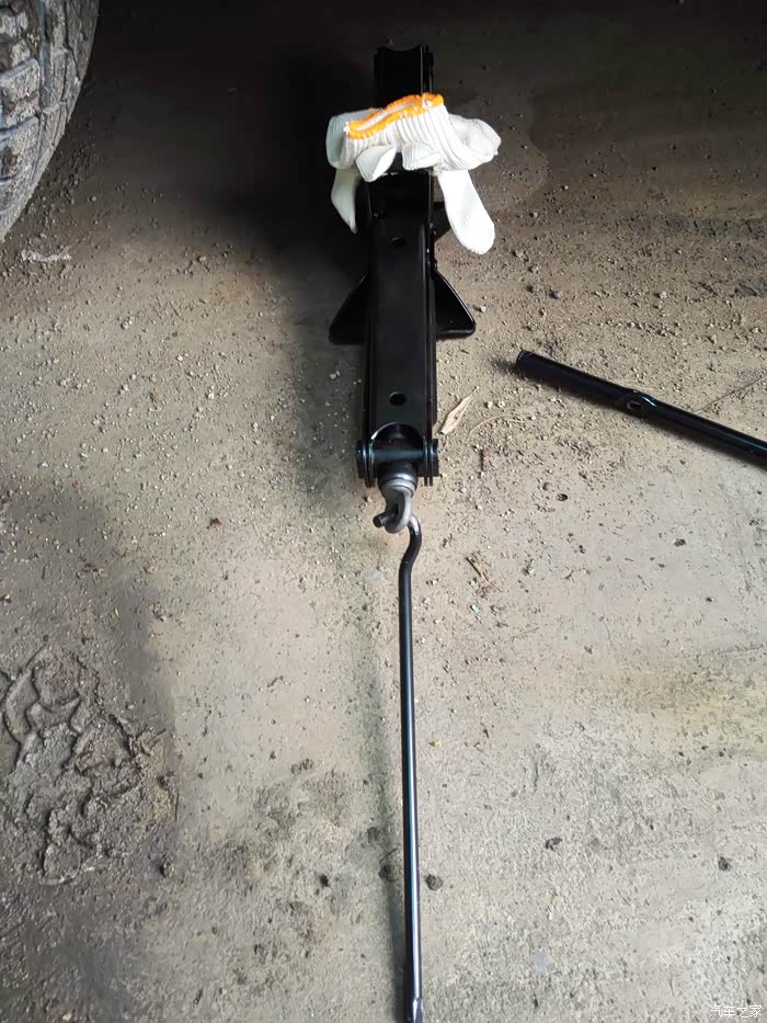 整体就是这个样,使用时左手握位挂钩,右手握位套筒就可以把千斤顶升起了。由于一个人操作,使用的过程拍不到。