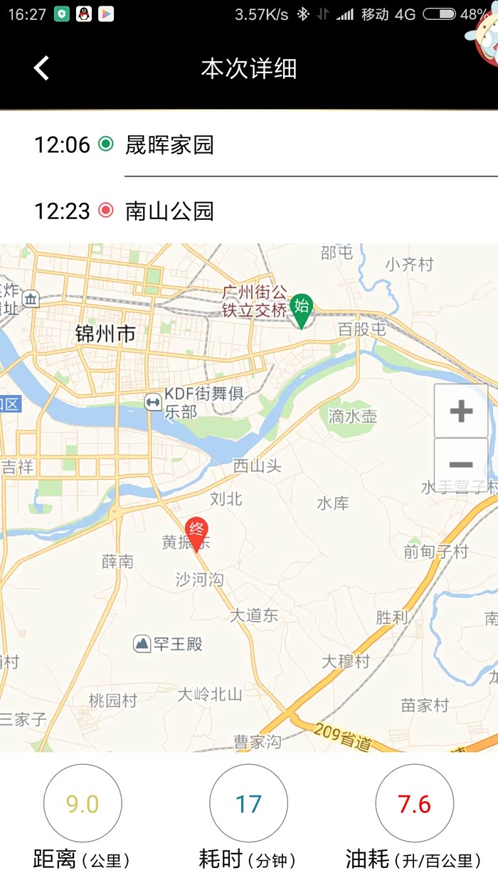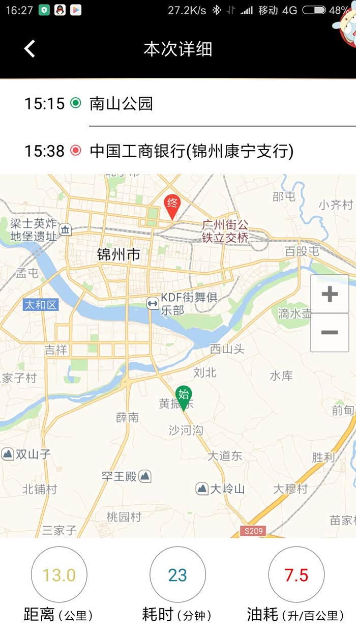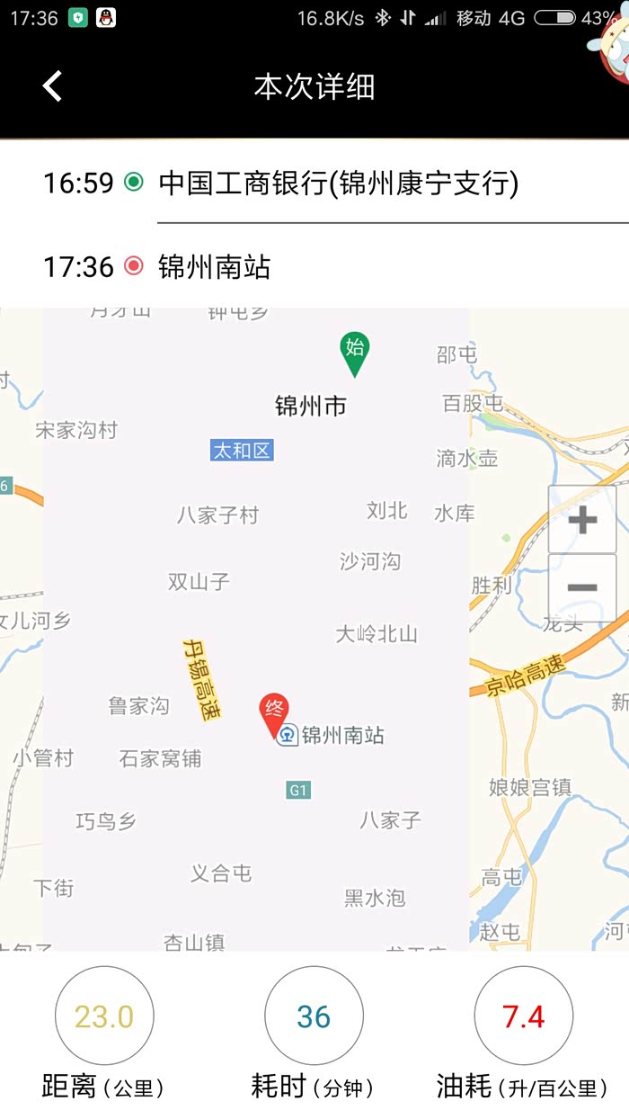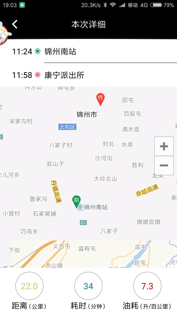 这是我清完小里程后,从我家到锦州南站的表显24.8公里的油耗,才7.0L/百公里