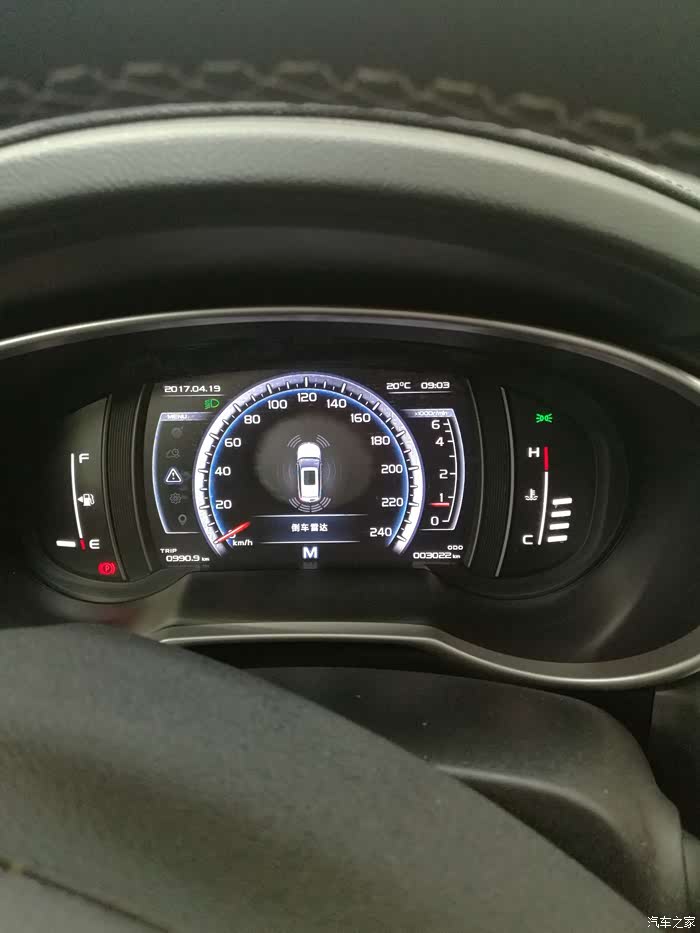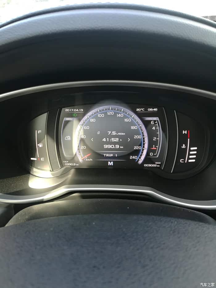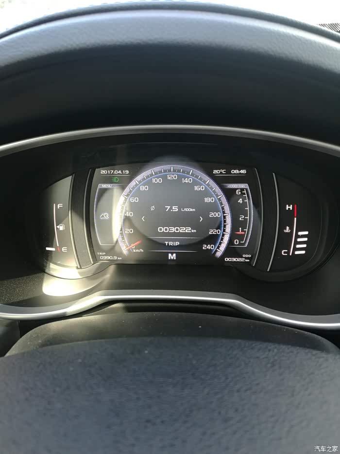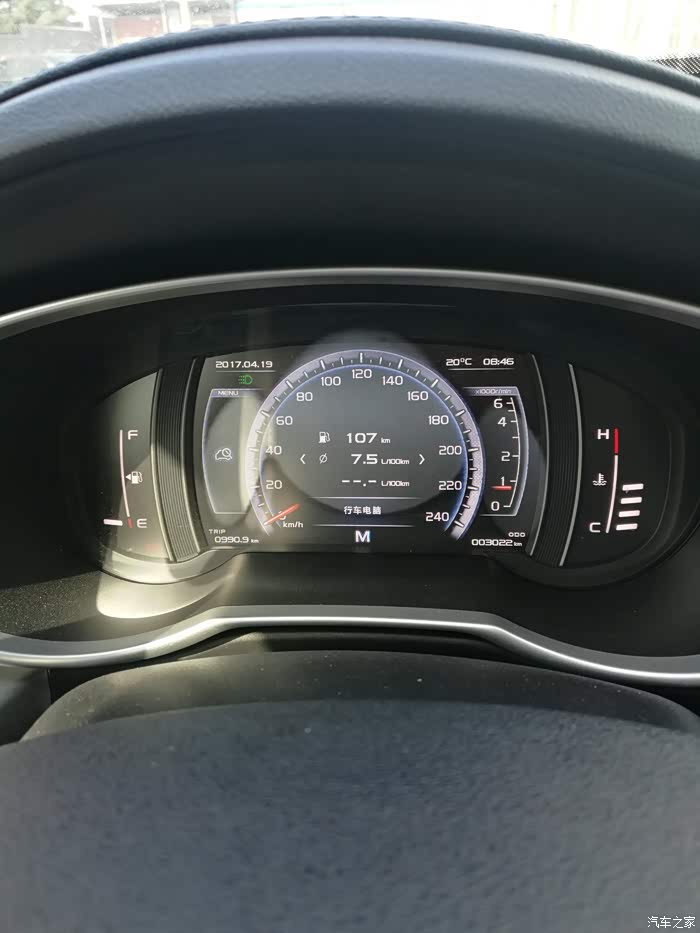 显示油箱内燃油可以行驶107公里,油耗7.5此时油箱里还有一格油