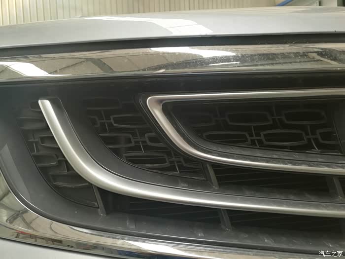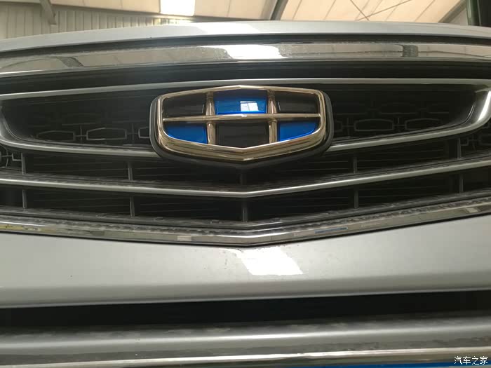 水滴涟漪进气格栅。吉利蓝黑标高端大气上档次