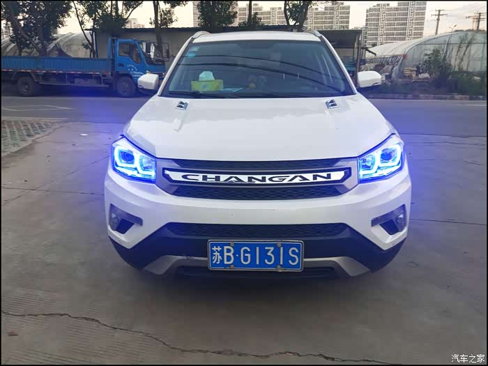 发蓝光的大灯,设计独特的进气格栅,清晰的轮廓就是霸气
