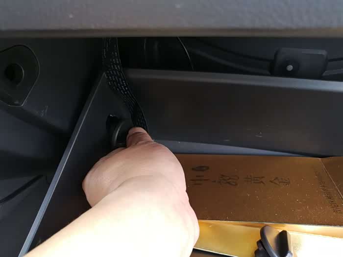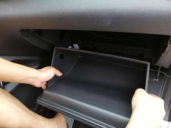 两侧的螺帽取下后,还需要将固定手套箱的卡扣与阻尼器分离,才能够取下手套箱。