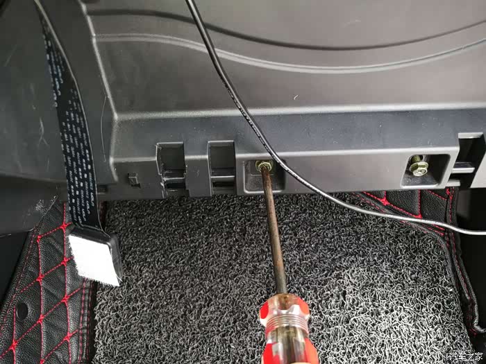 因为上次将行车记录仪的接电线从这个护板里穿了故去,所以这个护板是拿不出来了,只能呢暂时这样的放着。