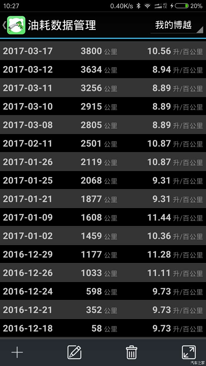 每一次加油都记录在案,8点几个的是中间跑了段高速