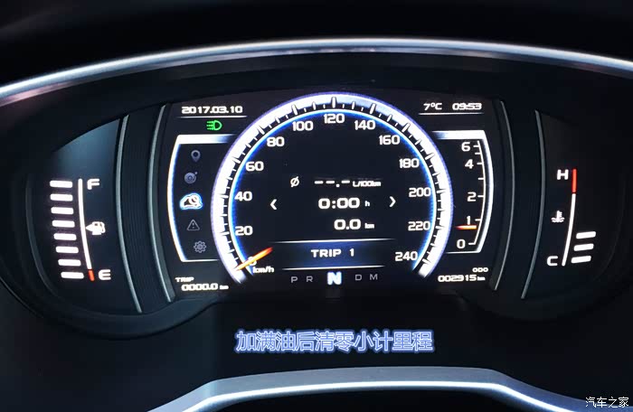 【1】查看车辆行车电脑的油耗显示,现在的新车基本都配备有行车电脑。拿博越来说,里面有即时油耗、总里程及平均油耗、小计里程及油耗。在想计算某一阶段油耗的时候,把小计里程trip1的数据清空跑一段,所显示的小计油耗是比较准确的(不是走走停停那种)。可能有些车不支持行车电脑或者不支持清空数据,那就只能用其他方法了。
