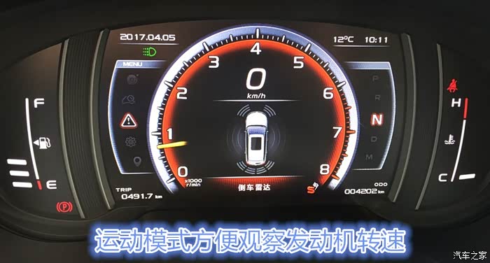 【楼主经验】:冷车启动车辆后,观察发动机转速,一般会在1分钟左右转速下降并达到稳定转速,可以点开运动模式,更方便观察发动机转速。这个时候我们就可以挂挡怠速行进,在水温上升1格后可以逐步提高速度,在达到3~4格后就可以尽情驾驶了。