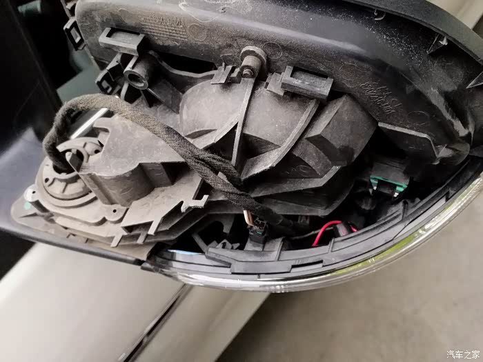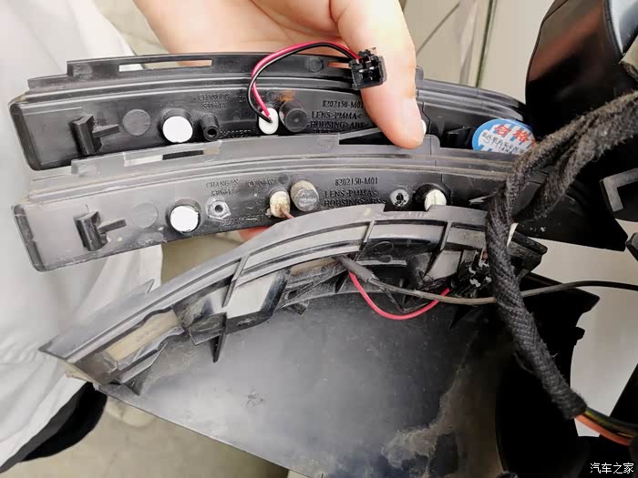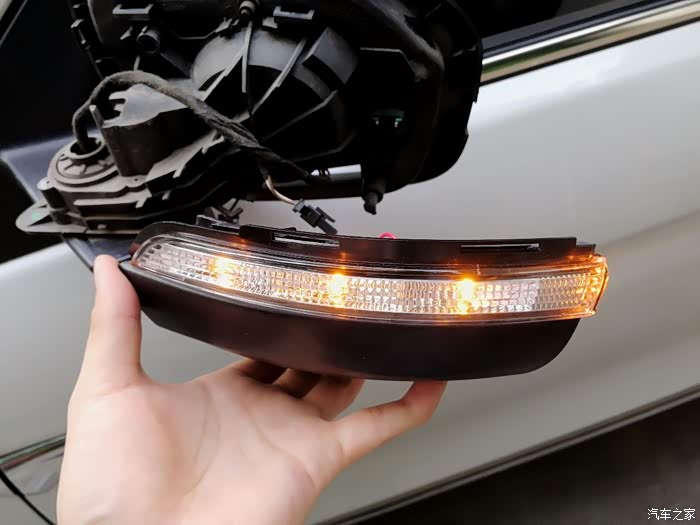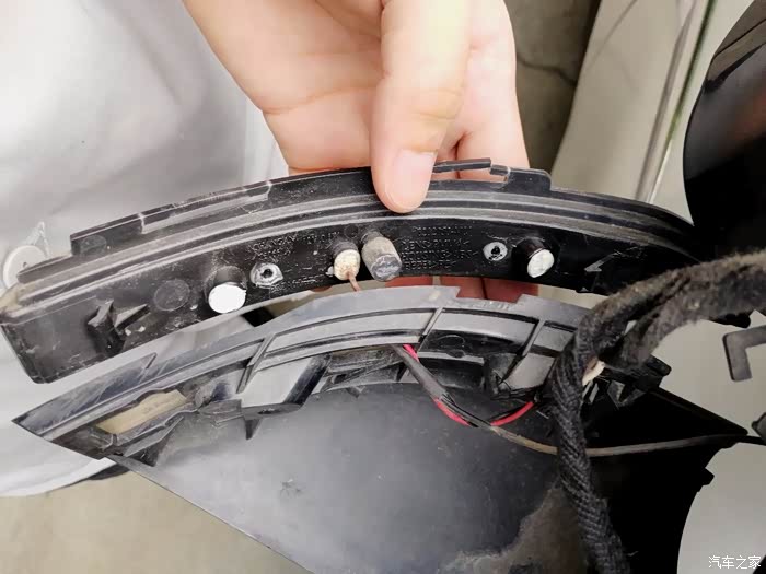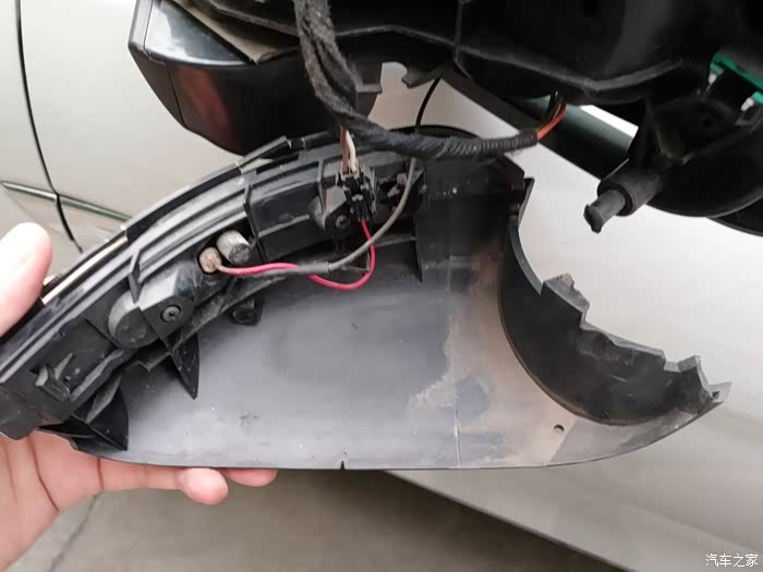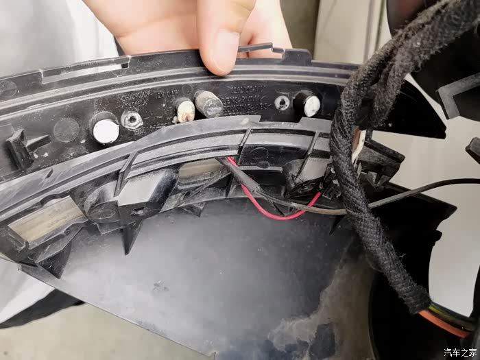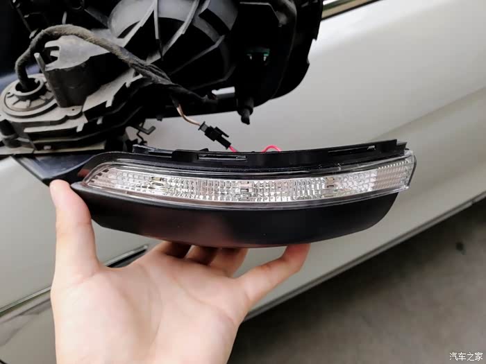 后视镜壳拿掉了,里面好像很复杂,灯条是连在底座上去的