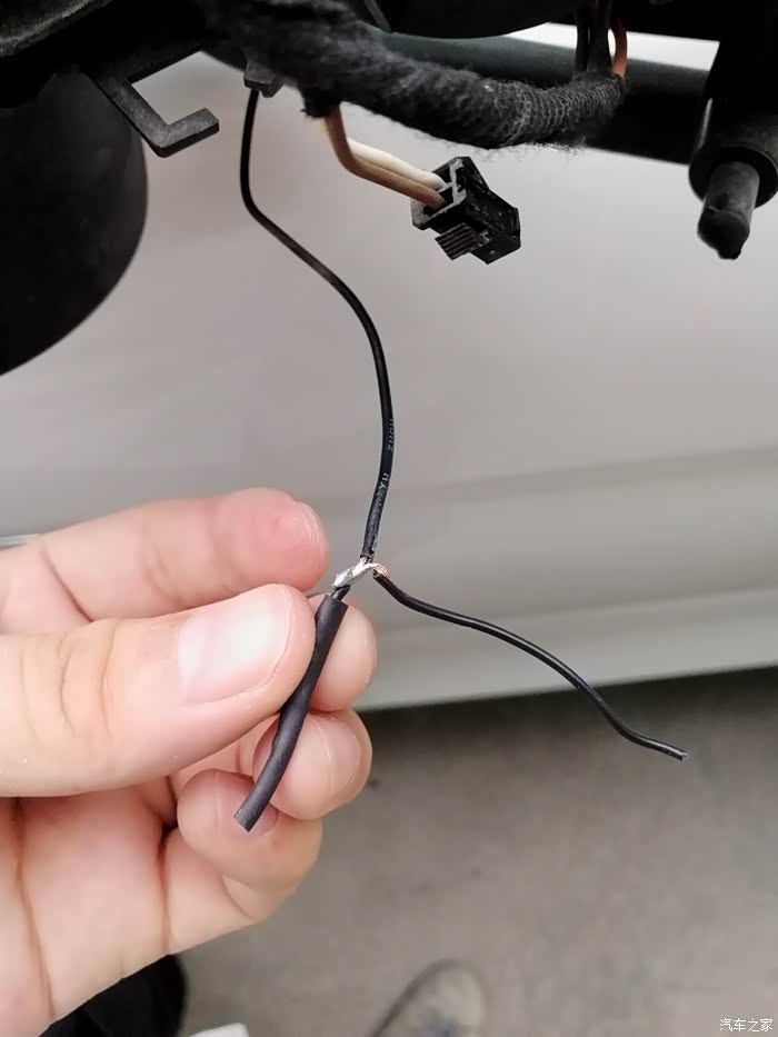 把新的转向黑线破开,再重新把后视镜加热线跟转向黑线连接在一起