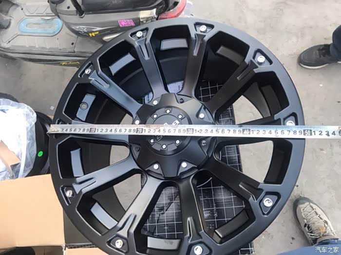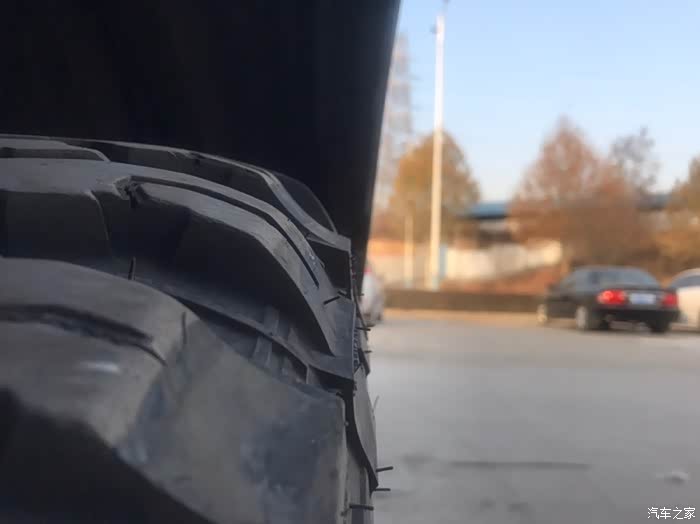 原车18寸轮毂为+45,我改的是黑犀牛的为18寸+15,原车轮胎265/65/18的公路胎,我改换的是275/65/18MT轮胎,在之前的帖子提到过升高两寸和更换轮胎后,轮胎和车身有剐蹭,所以需要更换轮毂,才能解决剐蹭问题。