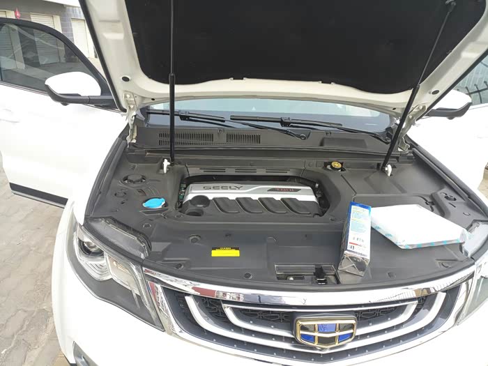 这个时候先不着急,既然弄一次,顺便把空调清洗一下,打开发动机盖子,真平整,我敢说20万之内的合资车没有这样的,给吉利一个赞