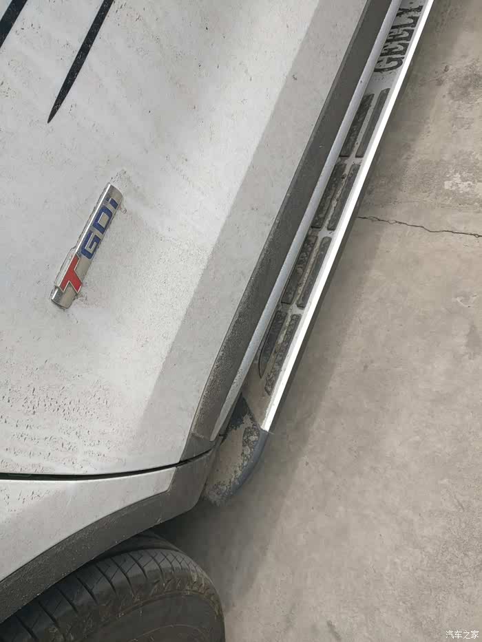 一层灰。委屈你喽小白。走了很多土道。脚踏板上全都是泥土。
