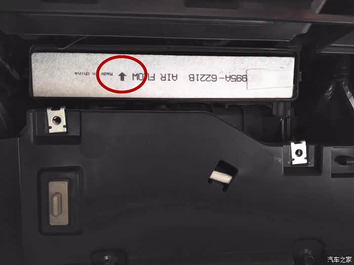 装上新的空调滤芯。(图片上是错误的装法,应当箭头朝下安装。)