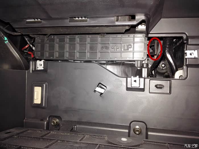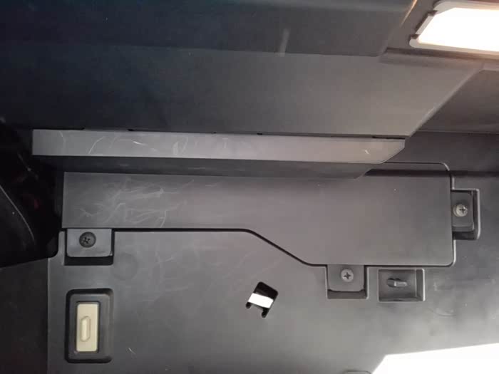 2.手套箱内左右两边各有一个限位卡子。掰开卡子并向下旋可取出。