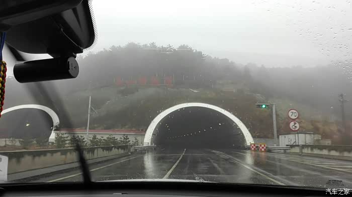 漆黑的山洞。在这儿要夸夸下面几个功能。①自动雨刷。非常好用的配置,下雨的时候自动工作,钻入山洞,马上就停止工作。②自动头灯。也是很有用的配置,进入山东自动点亮,特别是里面没有照明设备的山洞,一点儿没有手麻脚乱的感觉。③定速巡航。是高速公路离不了的配置。在比较长的山洞,由于车少,车会越开越快,不知不觉能超过百公里。后来打开定速巡航,定到七十,很轻松的应对超速监控。后面过了石家庄,上到G4高速公路,我的全程定速是一百公里,路况好,点一下加速按钮,就变成110了,假如路况转换,那么点减速按钮,会九十、八十往下减。非常好用的功能,不仅解放了脚,而且刹车踏板也用的很少。