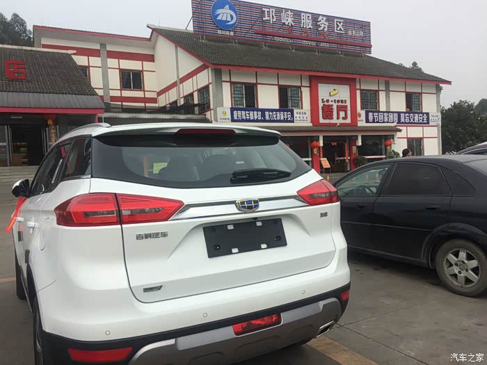 邛崃服务区。旁边黑色轿车的司机大哥和我聊了一会博越,他说要20多万吧。。。。。。