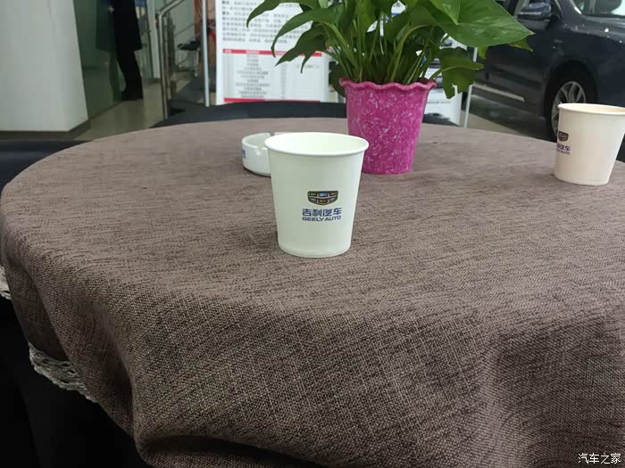 第二天一大早到了4S店,等销售帮忙办理相关手续。纸杯上的标是不是很赞。