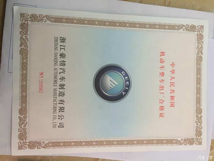 车辆合格证。