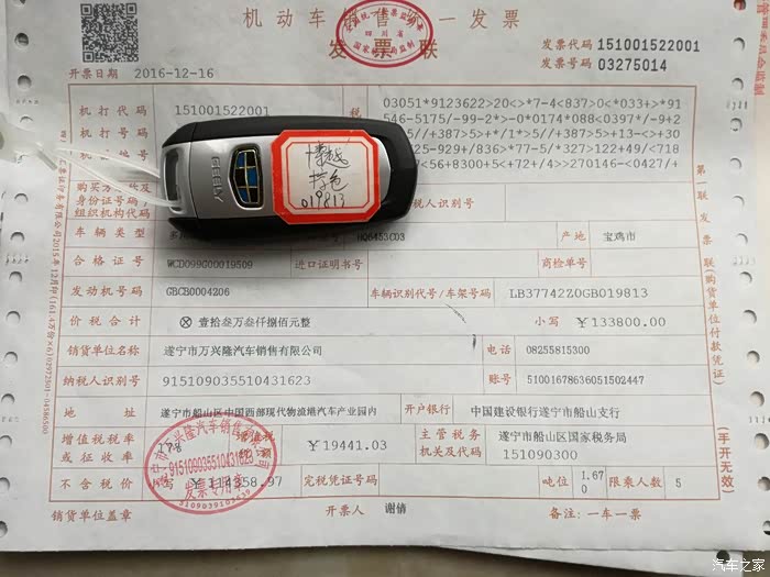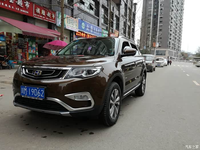订车篇:就有买车的想法,因是拿工资生活的人,怕因养车影响家里生活质量,一直犹豫,媳妇老埋怨回老家、旅游等回没车很不方便,就开始选车,标准:自动档,SUV、紧凑型、预算15万,合资车子弹不够,不考虑。国产车有H6、GS4、CS75、博越、东南DX7入围初选,H6因街车被PS、GS4因地双离合不放心被PS、东南DX7在车质网投诉榜一直名列前茅而被PS,最后就剩下CS75和博越,CS75车型硬朗,车身相对较大,但内饰做工稍差,博越车型好看,配置极高,内饰做工精美,但等车时间长,但想着自己并不急着用车,通过试驾,也切实感受到什么是三好博越,于8月21日在遂宁万兴隆4店订了自动智慧棕色博越。等车篇:签合同时,4S店说3个月提车,前一人半月没与销售联系,就上班之余泡在之家博越论坛里。发动机息火、车机死机、变速箱漏油、油箱破裂等一个个问题的出现面忐忑不安,又随着一个一个问题的解决而暗暗高兴。国庆过后,每半个月与销售联系一次,问一问:上个月交了多少车,大概什么时候提车之类的,让销售别忘了自己的车。11月初,销售说我的车4S店已与厂家结算了,就等厂家发车,这可高兴坏了,可高兴太早了。11月中旬没发车,11月下旬还是没车,论坛里都议论自动档车因变速箱质量问题和发动机产量问题产量减少,大量生产2.0的手动档,结算了1个月没提车也从傍佐证了上述原因,什么时候提车心里没底,就感紧找备胎,虎7或任性5,就打电话结销售,说退订,销售说你的车快了,并发了结算单结我。第二天,接到吉利回访电话,又过了两天,销售打电话过来说,车架号已发到4S店,几天之内就能发车,这下心总算定下来了,12月5号,销售说已发车,12月7号车到4S店,销售说暂时提不了车,因12月8号到11号遂宁举行车展,4S店没人交车,无奈,只好又等几天。提车篇:车展结束第二天上午9点,我赶到4S店,4S店正开会,我就看停车场,一眼看到我的棕色博越,快步走过去,仔细观察,忽然我的心里一紧,发现在左前侧有擦挂痕迹,并有掉漆,这下的我心扒凉扒凉的,在4S店开会结束后,就叫销售过来,销售看到擦挂痕迹也很吃惊,就叫销售经理过来,销售经理说两种处理方法,一是向厂家报,等厂家发货换,相对时间较长,另一种就4S店补漆,保证无色差,两三天就行,我综合考虑,还是想尽快提车,在4S店送一次保养后同意补漆,兴高采烈的来,垂头丧气的回。第三天销售说漆已补好,可以提车了。验车、打款、买保险(强险、三者险、车损险、免责险共5700元),交10元钱办个临时牌照回家。用车篇:提车后一星期内缴购置税(需本人身份证及复印件、合格证复印件、发票税联,购置税申报表4S店提供)11436元,上牌125元,2个月天内行驶约2500公里,约25%城区、45%高速,35%省国道,平均车速约53公里,感觉还不错,底盘很整,车内异味较小,没有什么异响,就停上两天起步方向打死了,踩刹车时右后刹车盘有点异响,共加了6次油1520元,跑了2500公里,还剩4格油,表显示还能跑315公里,因在小县城生活,平时上下班都步行,所以市区开得比较少,在春节期间270元的油开了300多里,大概1公里7角多,春节后到重庆去了一趟,来回350多公里,烧了24升油左右,1公里不到5角,博越这个车配置高,舒适性强,城区油耗高,在省国道或高速还比较经济。事故篇:1月24日回老家返回县城,在进城路口因车多,前车突然减速,我也一个急刹,而我后面的车未保持足够的距离,我在车里听见“啌”的声,遭了,被追尾了,下来一看,后保险有点变形,一个雷达探头缩进1毫米左右,右反光板有裂纹,不影响行驶,而后车是一辆红色江淮瑞风S3,前机盖严重变形,进风口、水箱受损未严重,侧翼变形,还好,都没人员受伤,交警处理,他的全责,经定损,换后保险杠、一个探头、一个反光板和后保险杠骨架,花1760元,瑞风S3花了7千多元。总的来说,博越切实好开,如能接受油耗,是一辆好车,目前还未首保,首保时检查一下变速箱,看有漏油没有。