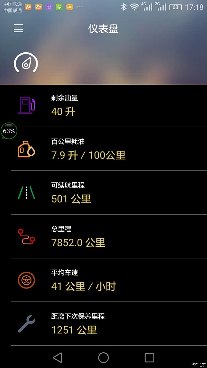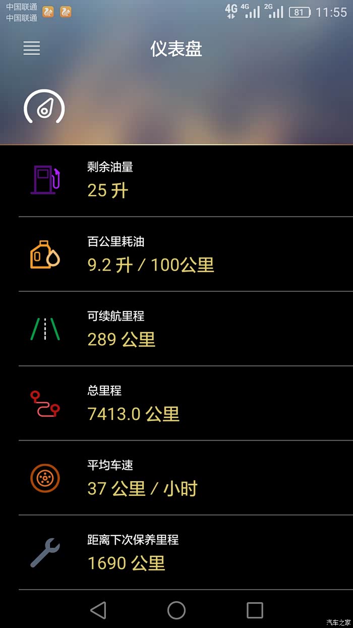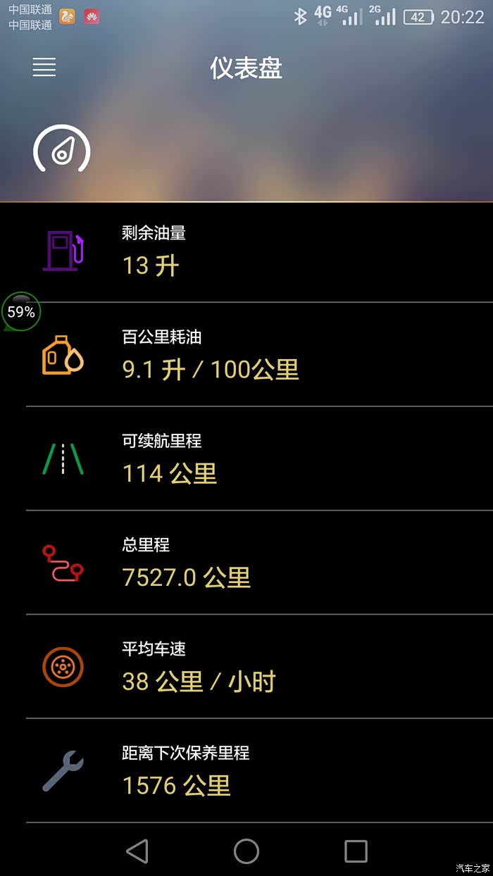 手机G-Link软件上的油耗