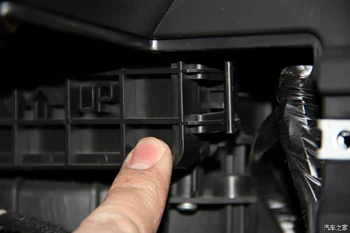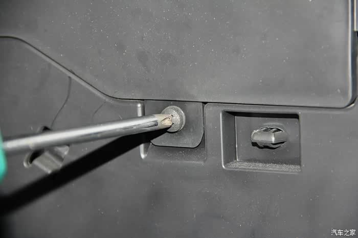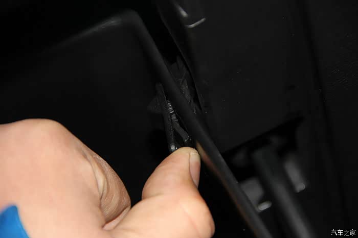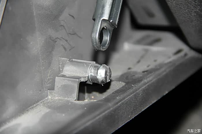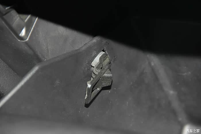 再安装卡扣,右边,同样的,需要将手套箱合上一点点