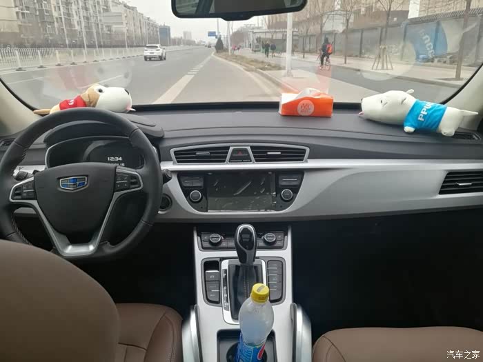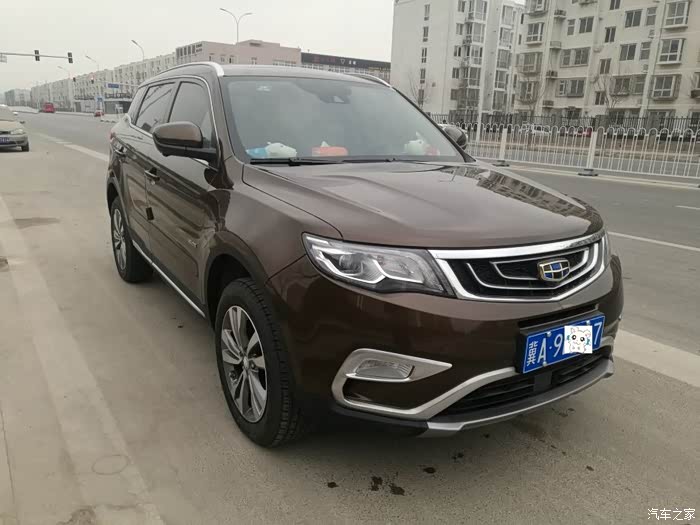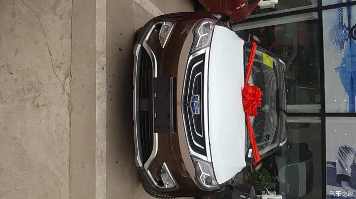 有点拖延症,车子10月底提的,车子已经开了2000KM了,才来交作业加认证。选车:博越算是第二辆车了,第一辆是奇瑞的瑞麒M1,三年前买的,目前才跑了5W公里,当时买的二手,也挑了很久。当时孩子放到了老家,为了不用去跑火车站买票,就想买二手QQ或者奥拓,跑高速也还凑合(主要是没钱),结果找了很久没找到合适的,有一次去花乡就看到M1了,黄色还是AMT变速箱,才跑了1,5W公里,感觉很合适,问了问朋友这车咋样,他说还可以买了开开再卖也不亏,就赶紧拿下了。车子开得不多,也就每月往老家跑一趟,来回也才不到1K公里。小黄兢兢业业的带着我跑东跑西,从没有把我给落路上,随着今年4月份家里2.1的出生,感觉小黄有点小了,后备箱小,车内也不大,带俩孩子还有孩子的东西的话就放不下了,因此向领导申请了很久(因为有小黄所以。。。)才给批准换个大点的。由于小黄开着也没问题,所以买车也不着急,就慢慢去4S试驾。第一个先去看了H2,路上看到很多,感觉外观也不错,网上查了查毛病貌似也就是发动机较肉,开始去4S看的时候,H2只有手动挡的,问了问销售,结果说要自动档的要等,我太笨还是想着自动挡好开所以就pass了。第二个目标看的是GS4,跟着表弟去的,他想着买这个,我也跟着去试驾了,当时新出1.5T双离合,试驾的时候感觉不错,加速可以,底盘也挺稳,隔音还可以,就是内饰有点硬邦邦的,坐在后排空间还行,不过摸摸这摸摸那,几乎都是硬的,就有点犹豫了。第三个就是博越,其实一直关注的是帝豪,感觉外观不错,配置也高,想着就买个轿车算了,结果吉利又出了博越,看外观看内饰,都比帝豪要好不少,等着陈震出了试驾视频的时候,看完就中毒了,尤其他开着都那个石头路的时候,车上下来回折腾但是还是很稳。等着查了查北京吉利的4S离我这都很远,因此等着8月份的时候看到清河那边有个授权店,赶紧就过去了。当时天挺热,下午到的,结果就看到一大波人围着博越在看,问了问销售有没有试驾,结果人家说等等吧,前面排了5个人,,只好出去溜达溜达。等着轮到的时候都12点多了。试驾车就是两驱至尊棕,赶紧上车,座椅感觉确实挺舒服,软乎包裹性也好(原谅我之前只开过M1跟明锐)。启动出发,开出去以后自己闹了个笑话,当然销售也没跟我仔细介绍,以为我都查好了这些信息,由于车是自动驻车,没有手刹,刹车了车还往前走,还找不到手刹,停车我只好踩着刹车,然后就问销售,这车不是带自动驻车吗,怎么我踩刹车了车还往前走呢?然后销售看了看,,说:你没有打开,,,,我直接无语了,,,。在路上跑着感觉挺稳,隔音也不错,涡轮介入后会有点滋滋滋的响声,一开始我以为是共振,后来慢慢踩油门才明白是涡轮介入。试驾完,立马就订车了,看了看配置,为了ACC就订了至尊,后来在路上看的时候感觉挺棒。因为这车太火,订车3月后才能提车,8月25订车,,等着到10月中旬车才到。啰嗦了这么多,上图。提车时公里数18km,还可以。