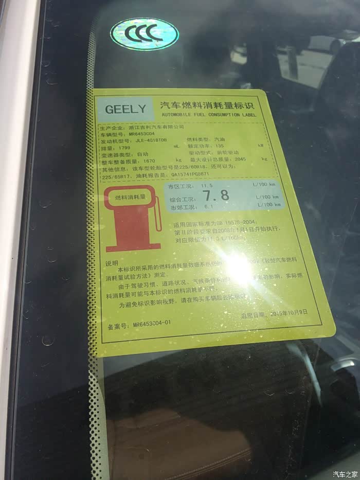 一、提车本人以前开夏利A+1.0三厢的车,油耗是真低,在市里堵车油耗也不会超过7个,选车的过程我就不跟大家介绍了,知道博越上市,观望了一段时间就订车了,貌似是4月中旬订的,5月底提的车。